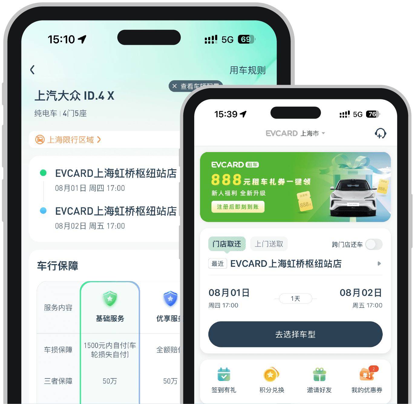 APP:可在手機(jī)應(yīng)用市場搜索下載“EVCARD租車”APP進(jìn)行預(yù)定。
